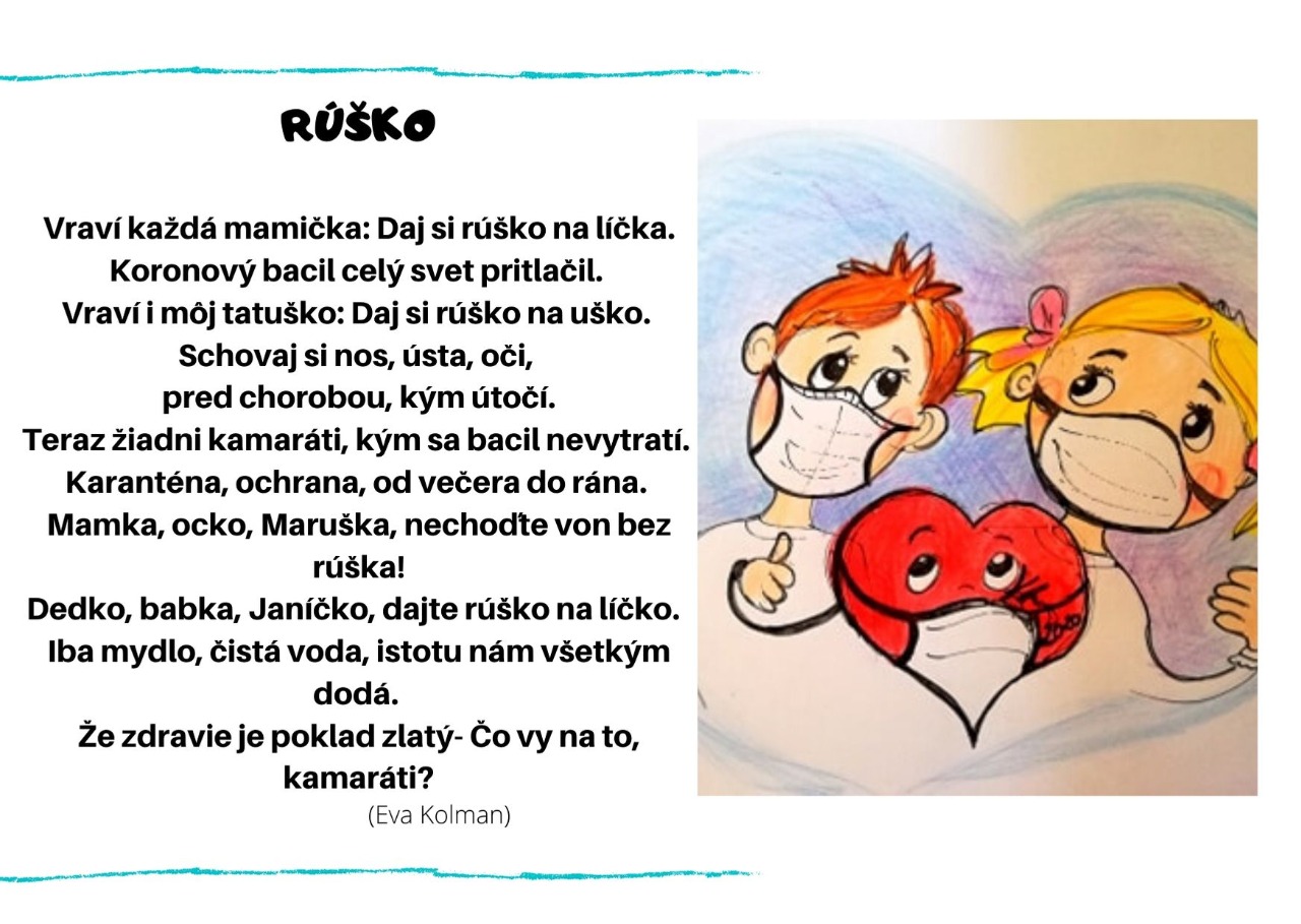 Úprimne, ani my dospelí sa necítime v rúškach pohodlne, avšak je potrebné deťom vysvetliť, že je to pre našu ochranu a pre ochranu všetkých, s ktorými sa na ulici stretneme. Ak si niekto kýchne alebo zakašle, bacily zostanú na rúšku, ktoré sa potom operie alebo zahodí a nehrozí, že sa vírus napelí práve na náš nos alebo pusu. A to, že rúško nie je hanba, už všetci vieme ;)
